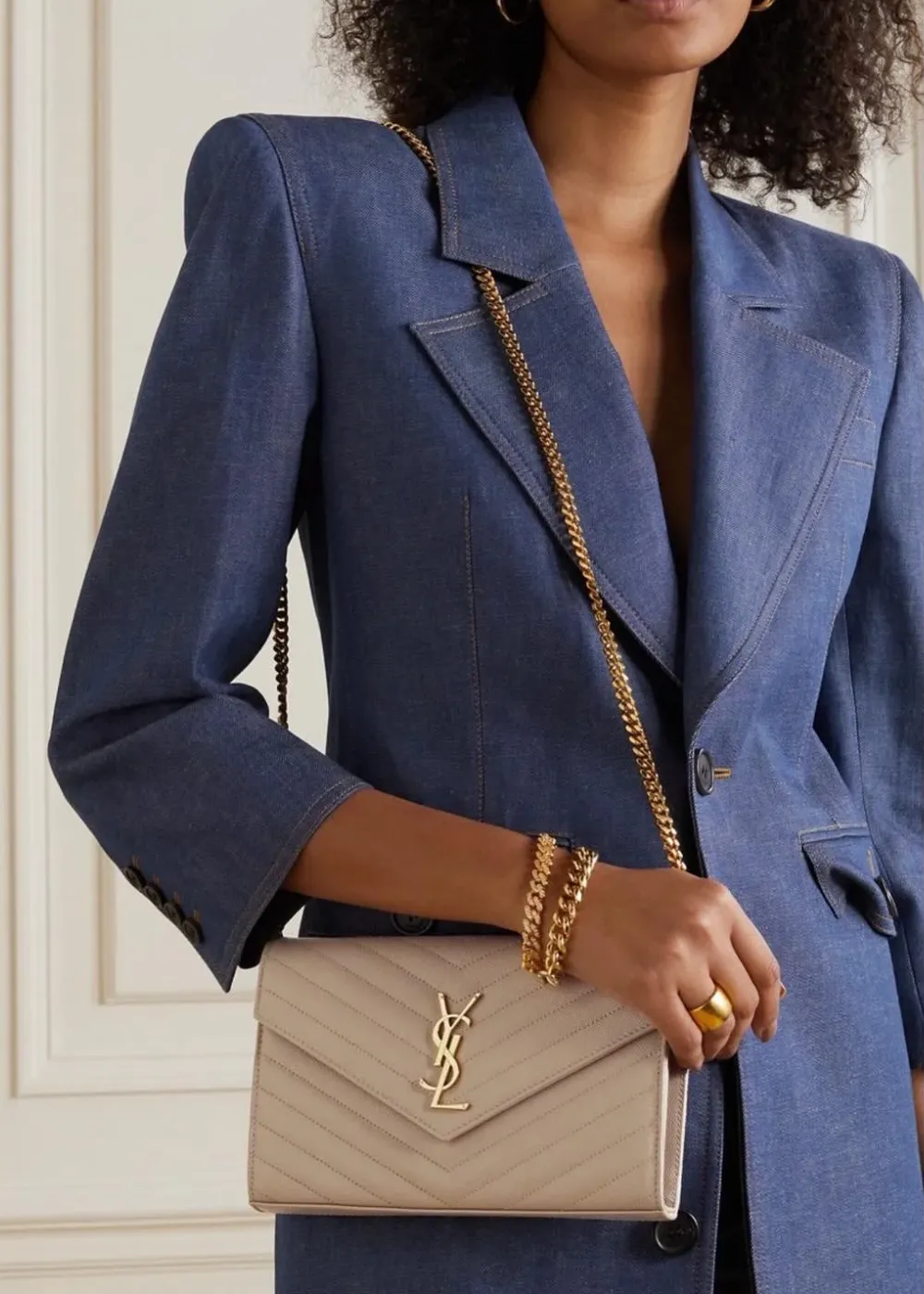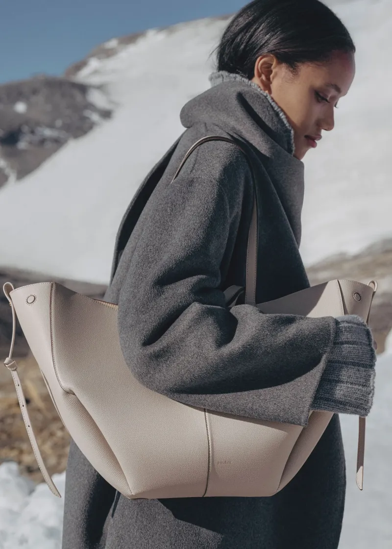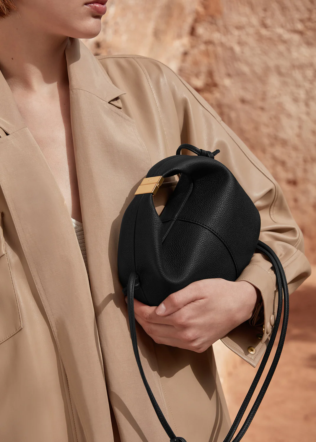 The “Numéro Neuf Mini” features an organic design that strikes the right balance between flexibility and hold. Its draped leather is held in place by hand stitching.