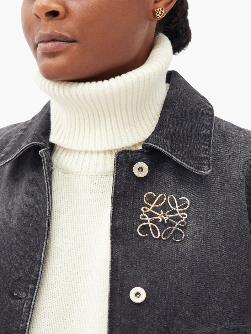 Loewe draws focus to the four letter Ls that comprise the Anagram emblem of this brooch by rendering each one in a different hue. It’s crafted from metal and is affixed with a pin at the back. Use it to bring a rebellious edge to a denim jacket.